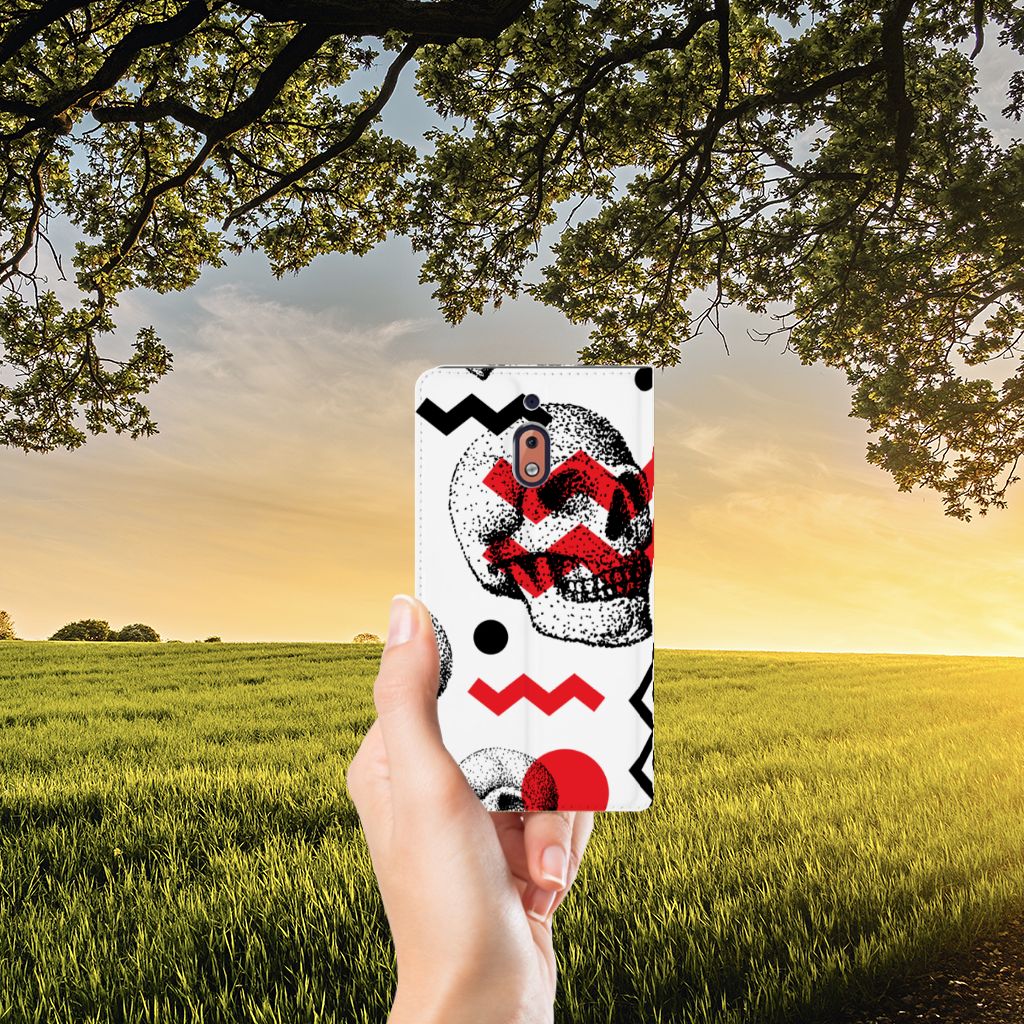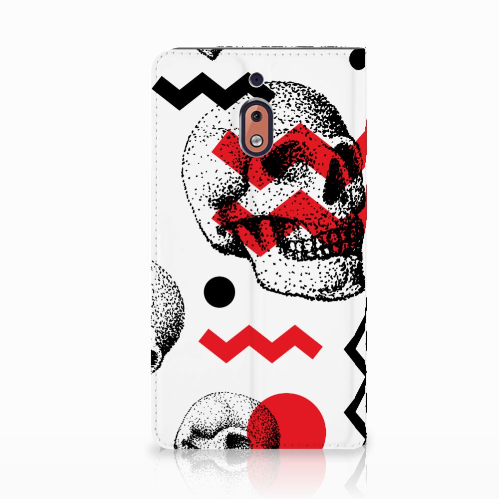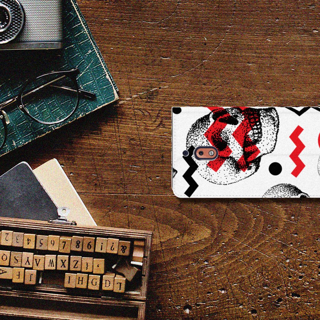 Mobiel BookCase Nokia 2.1 2018 Skull Red