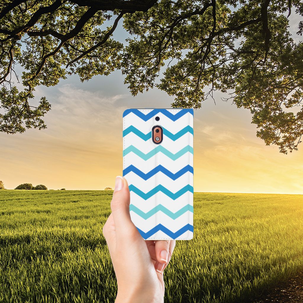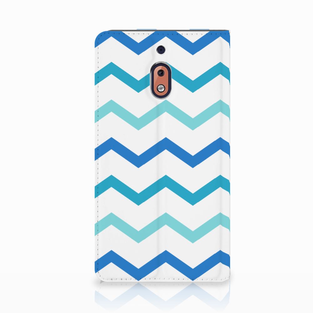 Nokia 2.1 2018 Hoesje met Magneet Zigzag Blauw