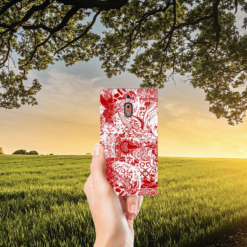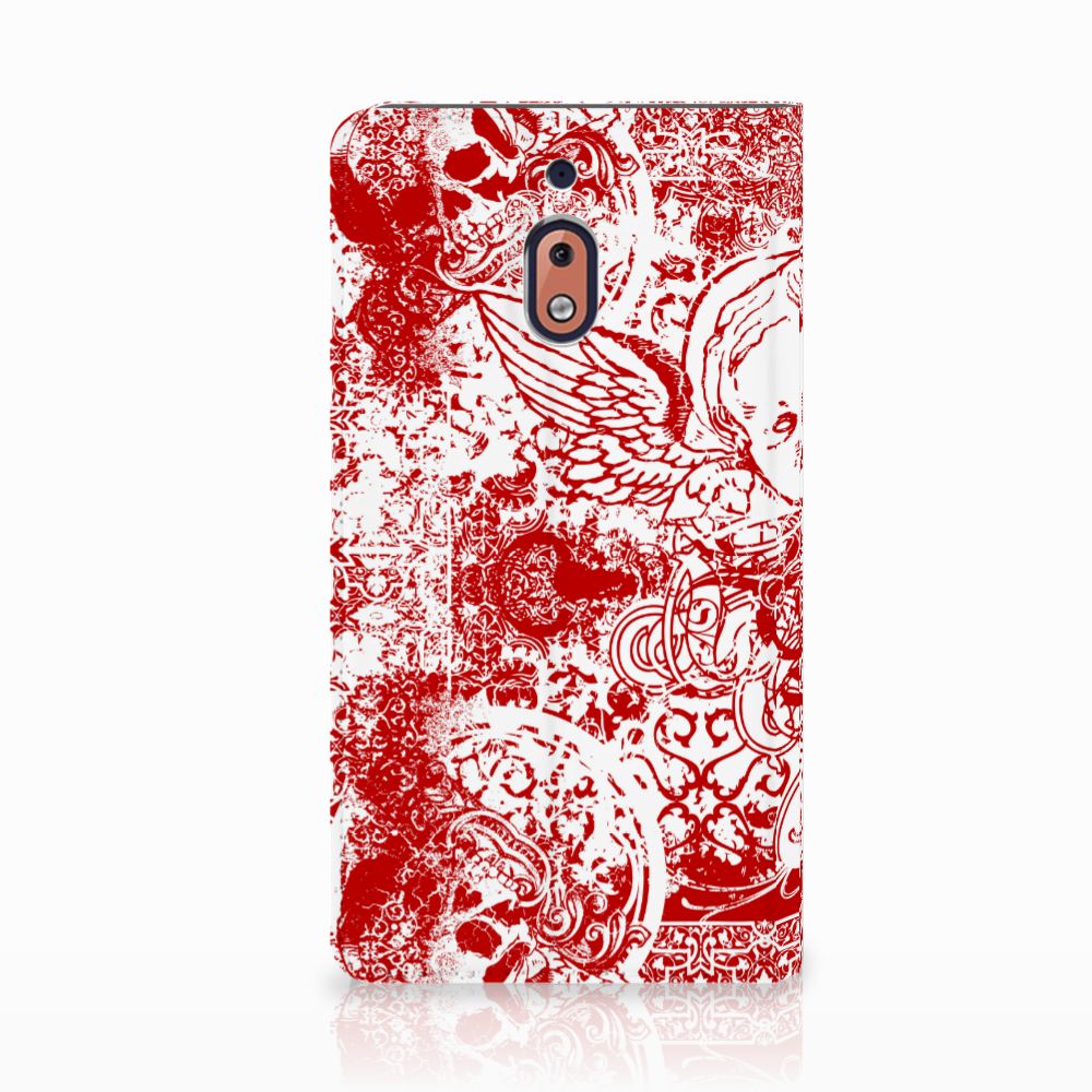 Mobiel BookCase Nokia 2.1 2018 Angel Skull Rood