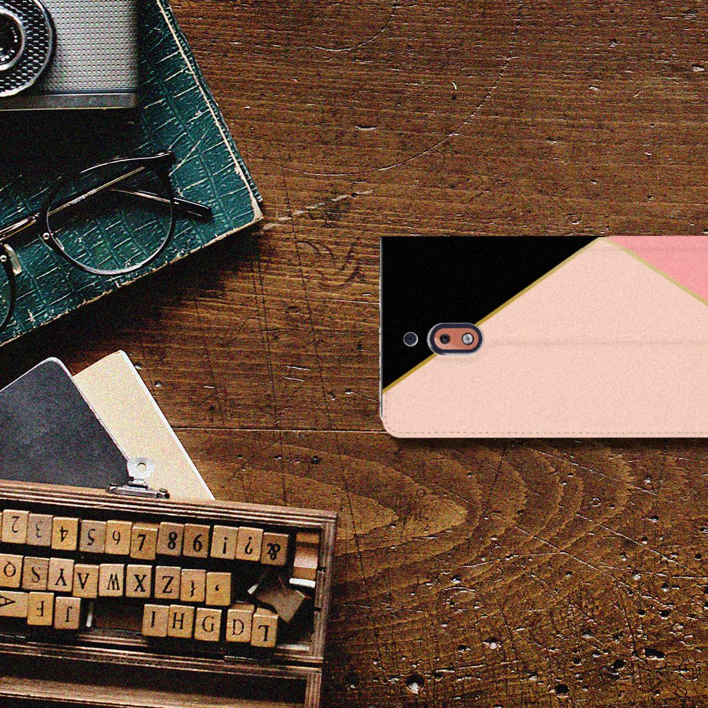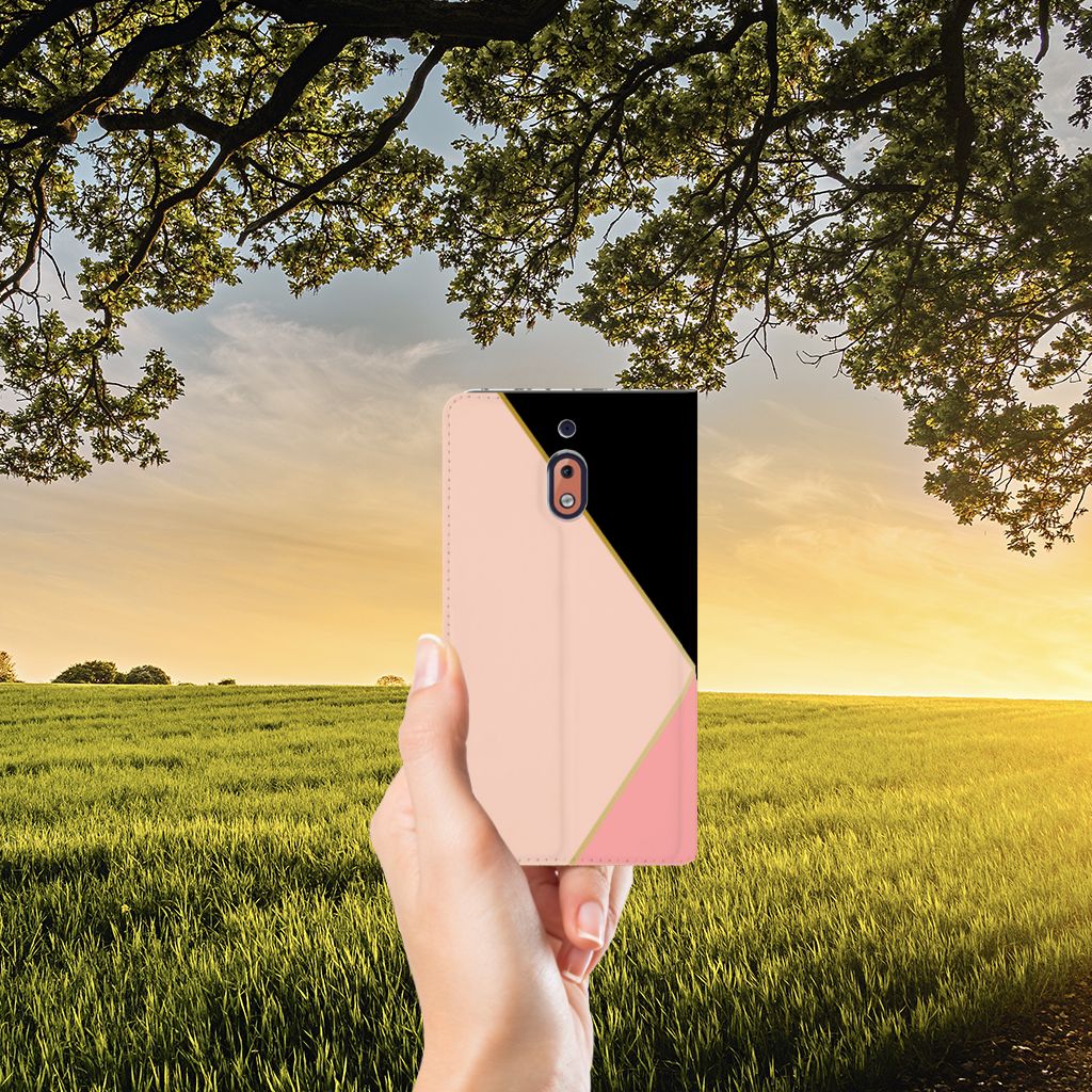 Nokia 2.1 2018 Stand Case Zwart Roze Vormen