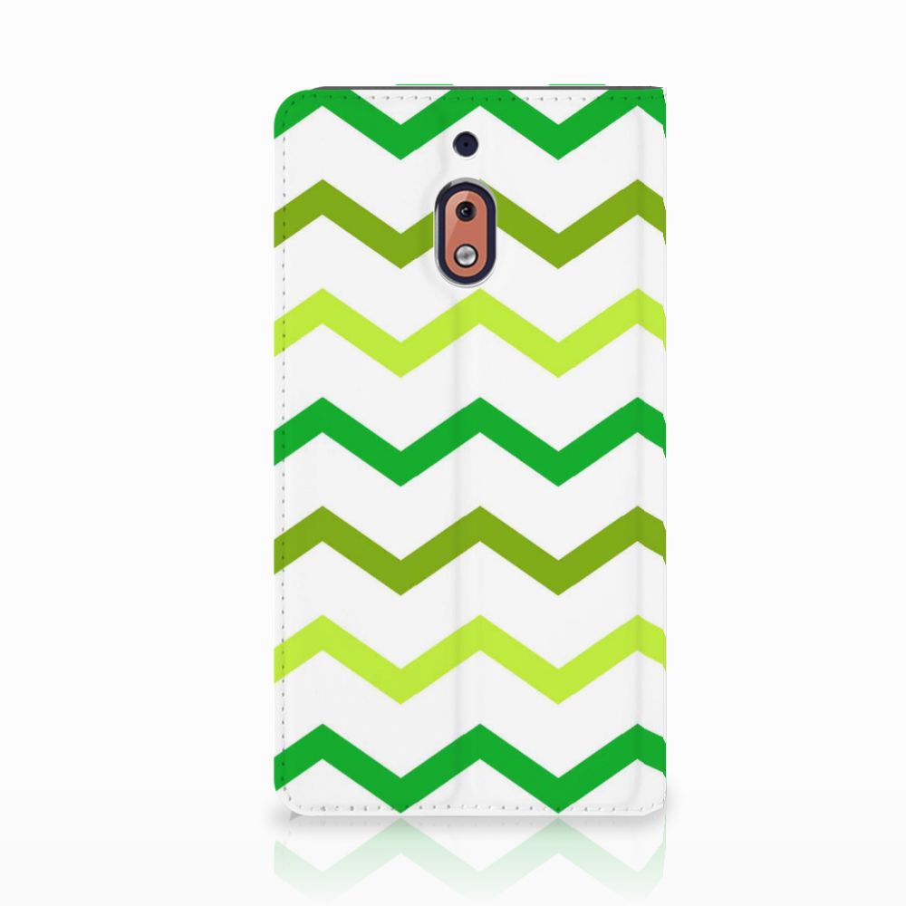 Nokia 2.1 2018 Hoesje met Magneet Zigzag Groen