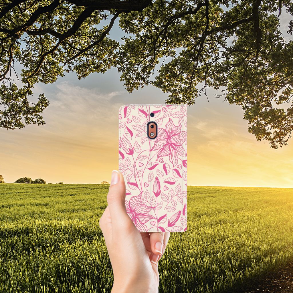 Nokia 2.1 2018 Smart Cover Pink Flowers