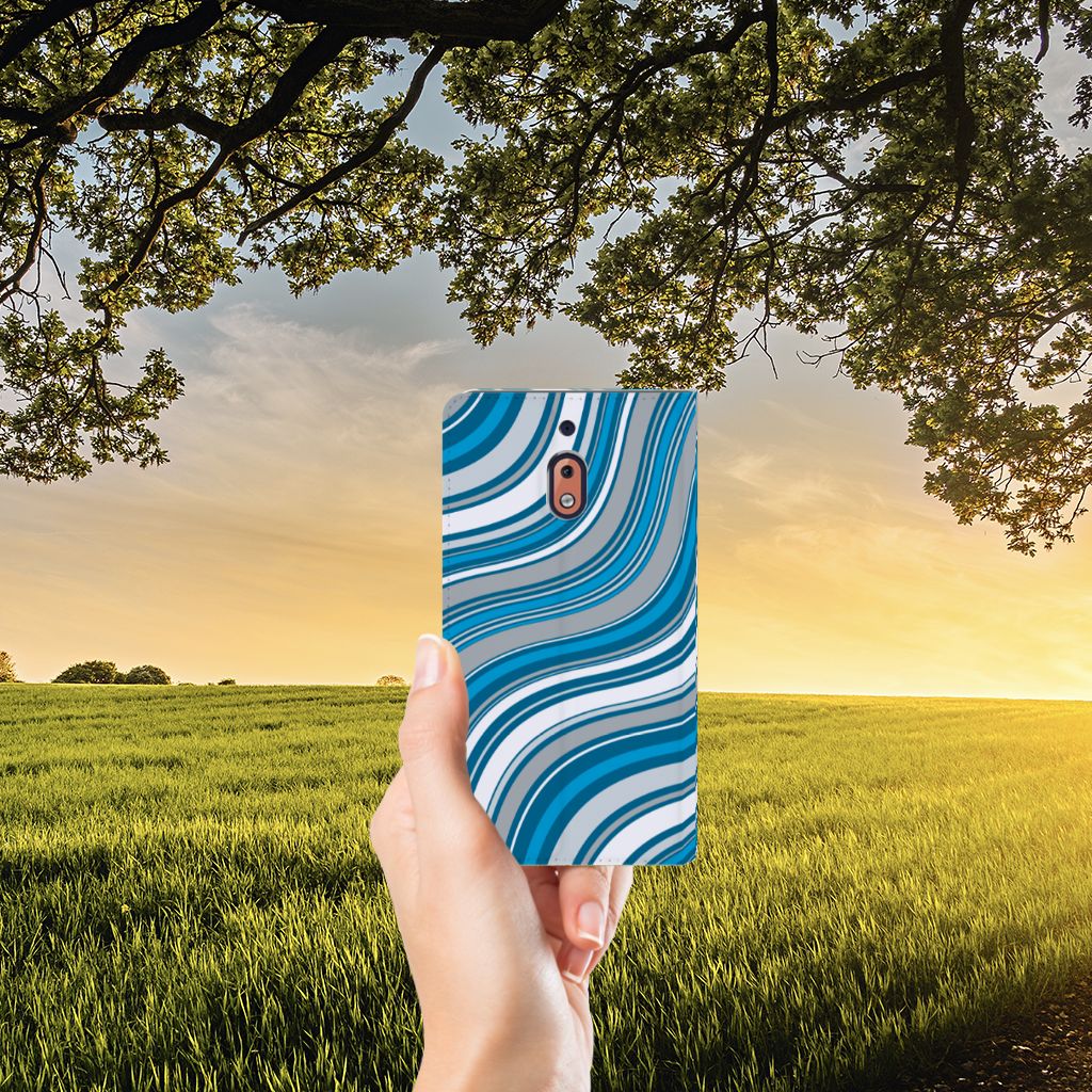Nokia 2.1 2018 Hoesje met Magneet Waves Blue