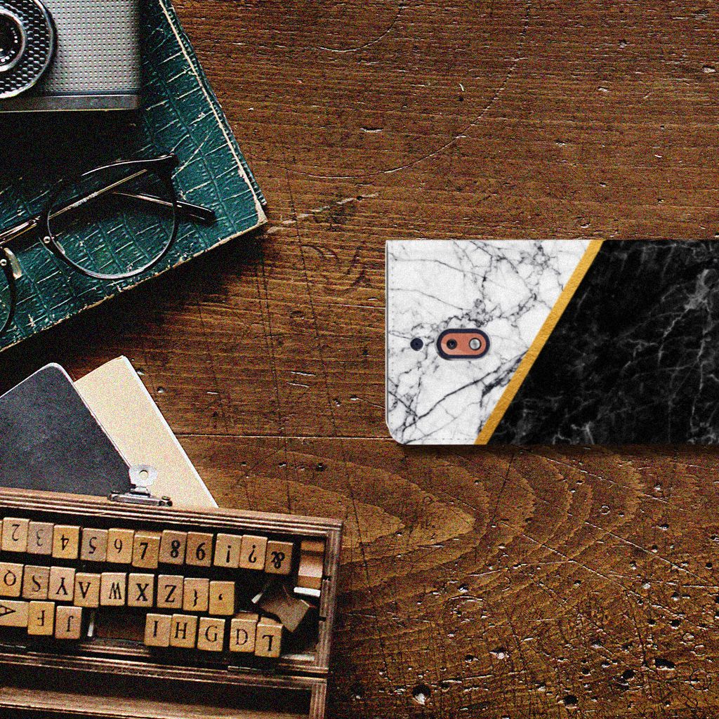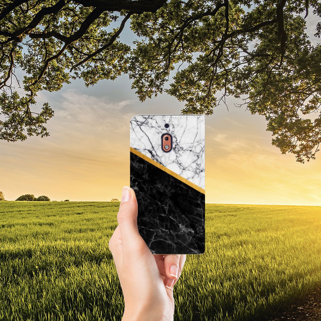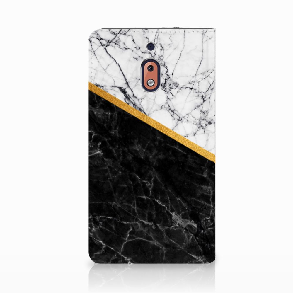 Nokia 2.1 2018 Standcase Marmer Wit Zwart - Origineel Cadeau Man