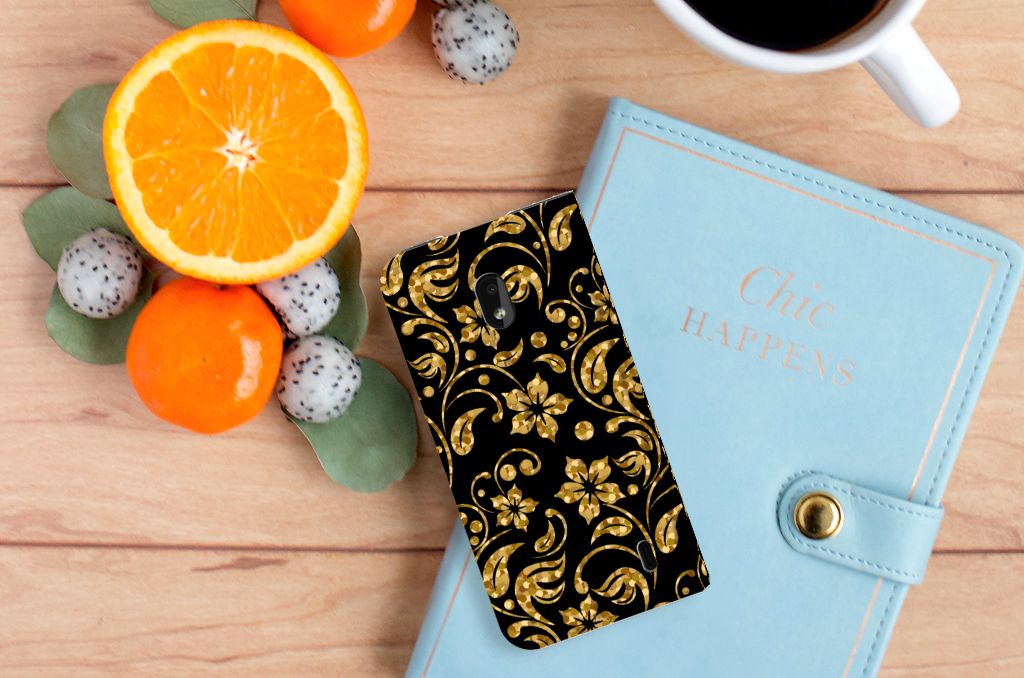 Nokia 2.2 Smart Cover Gouden Bloemen