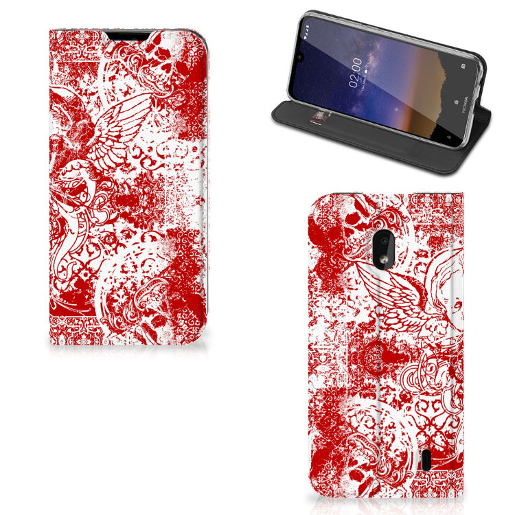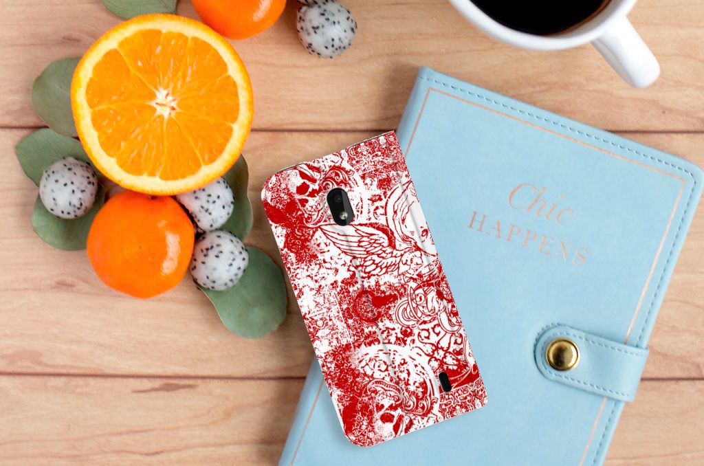 Mobiel BookCase Nokia 2.2 Angel Skull Rood
