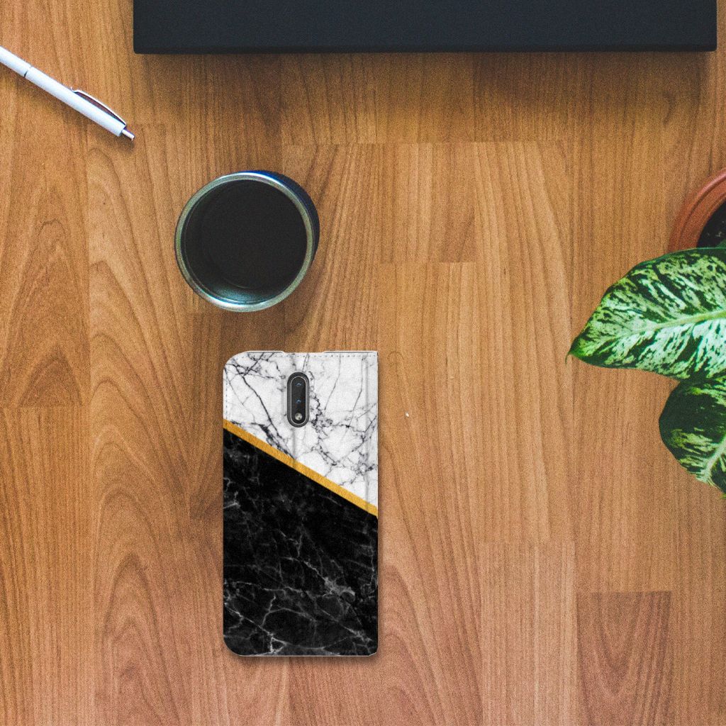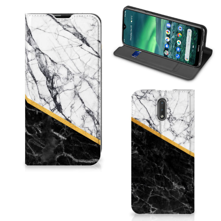 Nokia 2.3 Standcase Marmer Wit Zwart - Origineel Cadeau Man