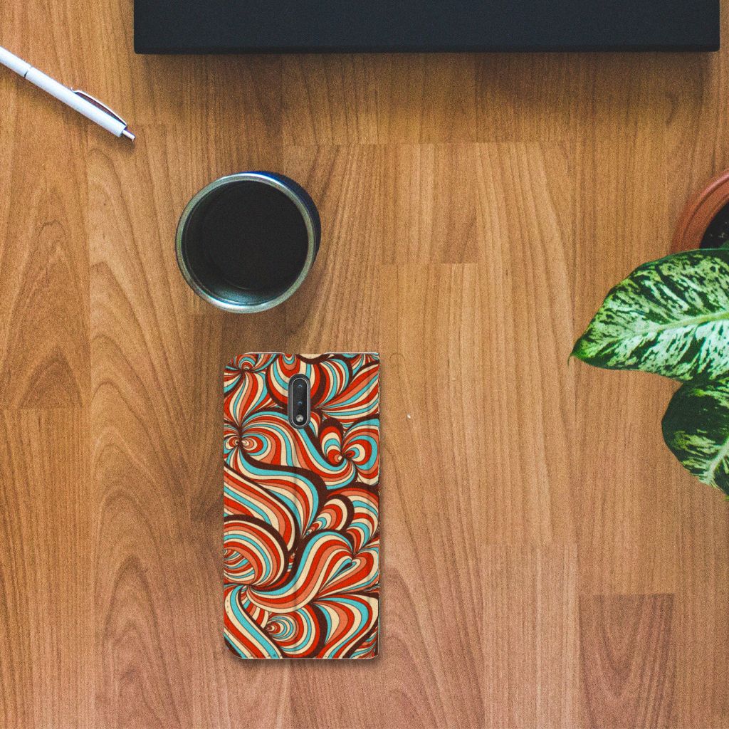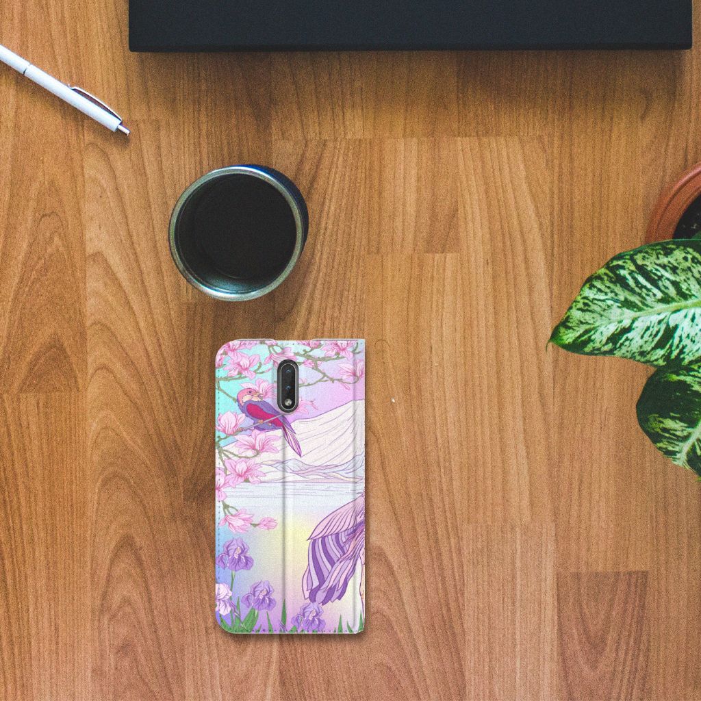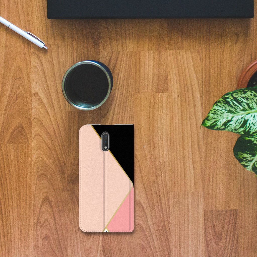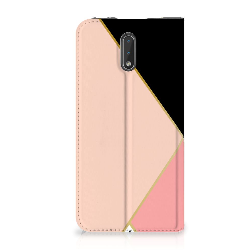 Nokia 2.3 Stand Case Zwart Roze Vormen