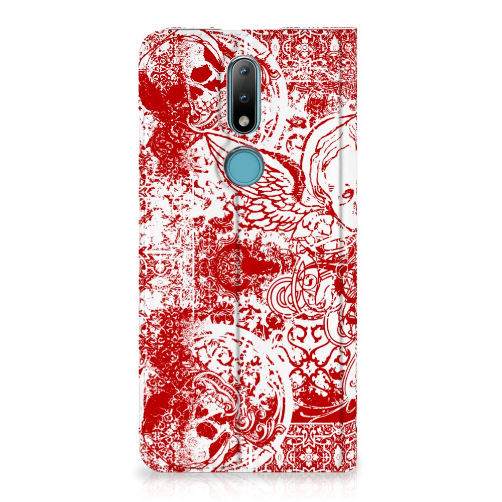 Mobiel BookCase Nokia 2.4 Angel Skull Rood
