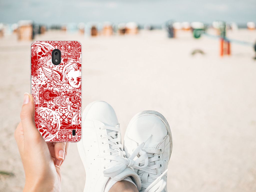 Silicone Back Case Nokia 2 Angel Skull Rood