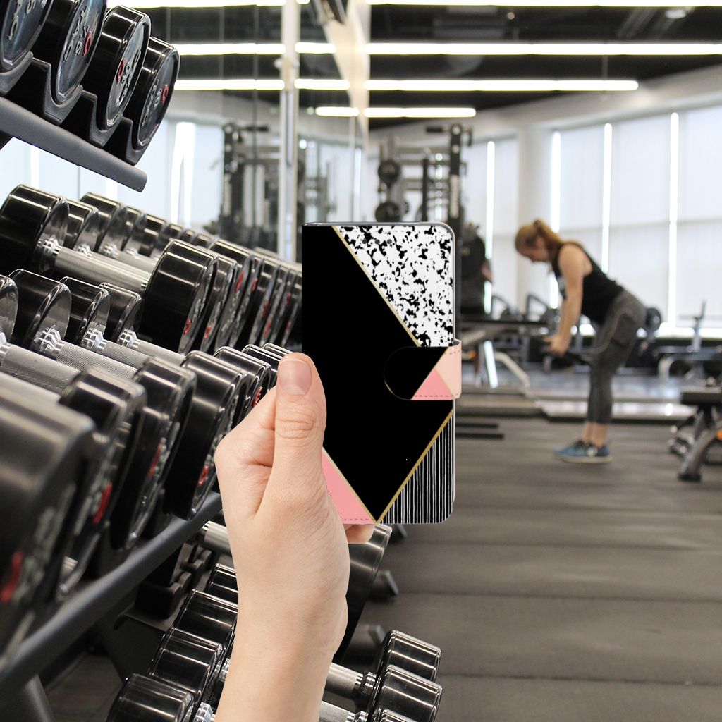 Nokia 3.1 (2018) Book Case Zwart Roze Vormen