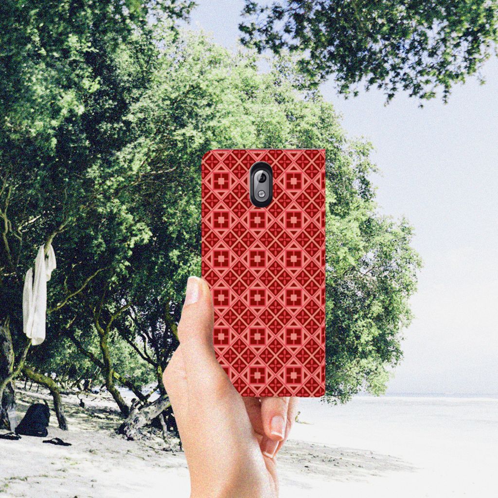 Nokia 3.1 (2018) Hoesje met Magneet Batik Rood