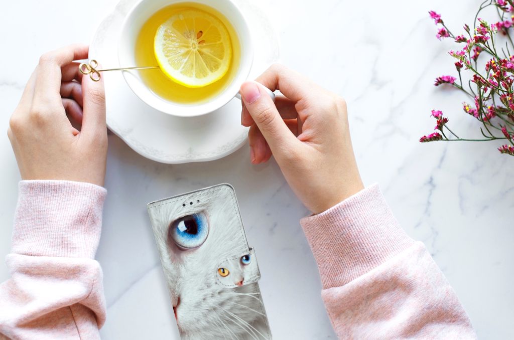 Nokia 3.1 (2018) Telefoonhoesje met Pasjes Witte Kat