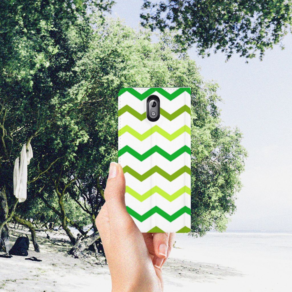 Nokia 3.1 (2018) Hoesje met Magneet Zigzag Groen