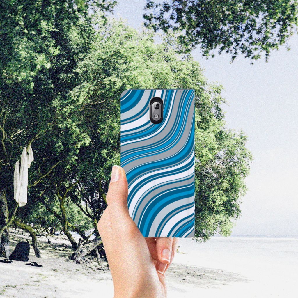 Nokia 3.1 (2018) Hoesje met Magneet Waves Blue