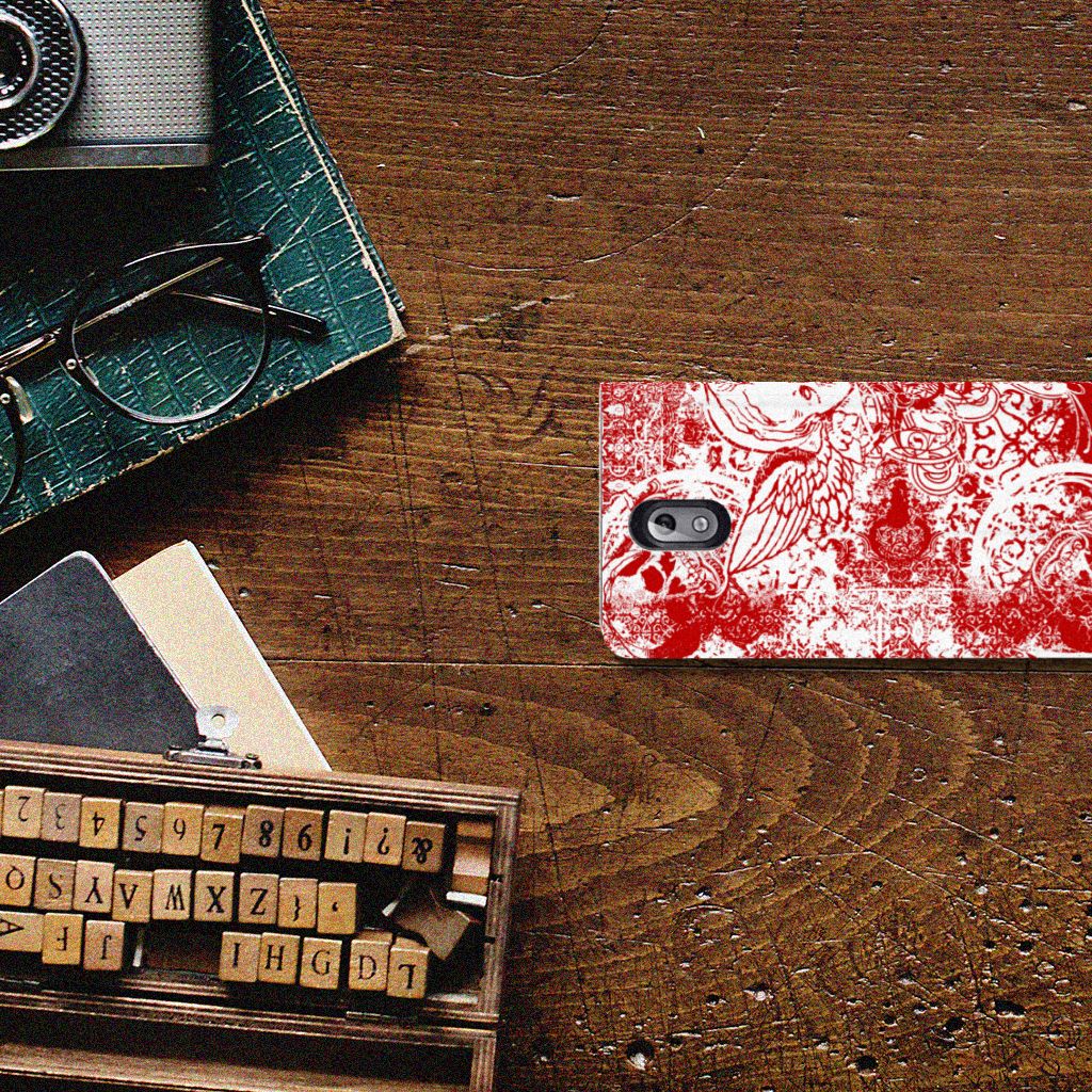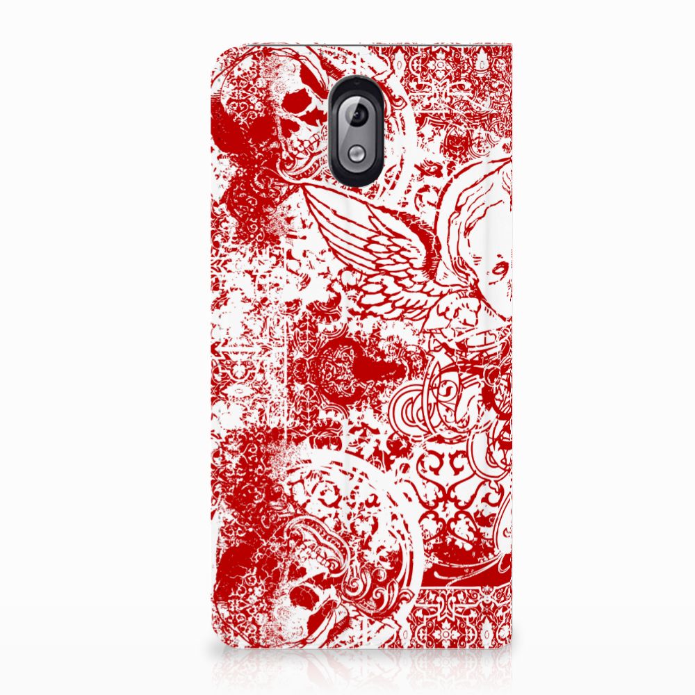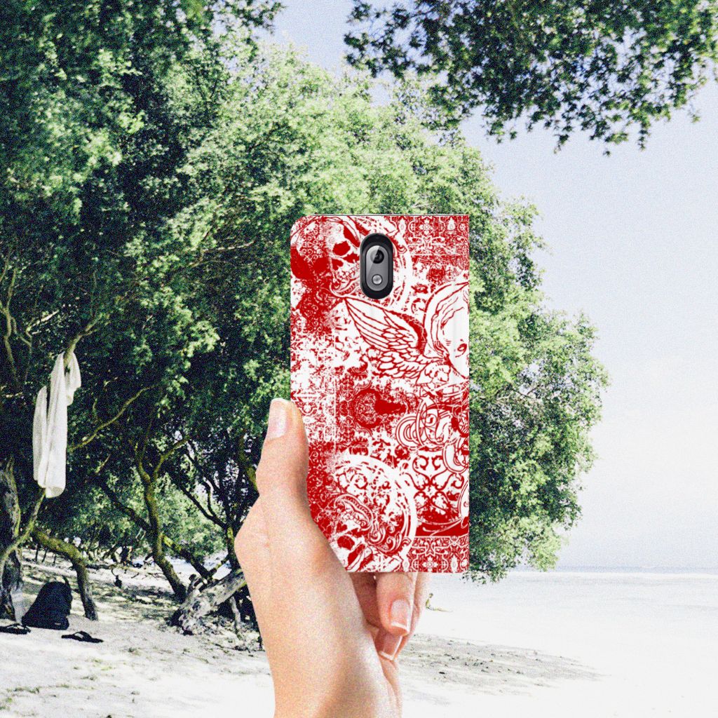 Mobiel BookCase Nokia 3.1 (2018) Angel Skull Rood