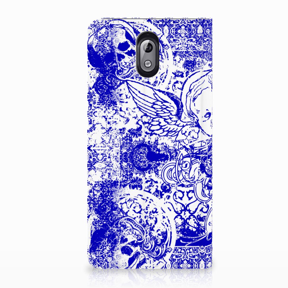 Mobiel BookCase Nokia 3.1 (2018) Angel Skull Blauw