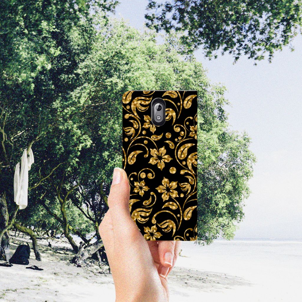 Nokia 3.1 (2018) Hoesje Gouden Bloemen