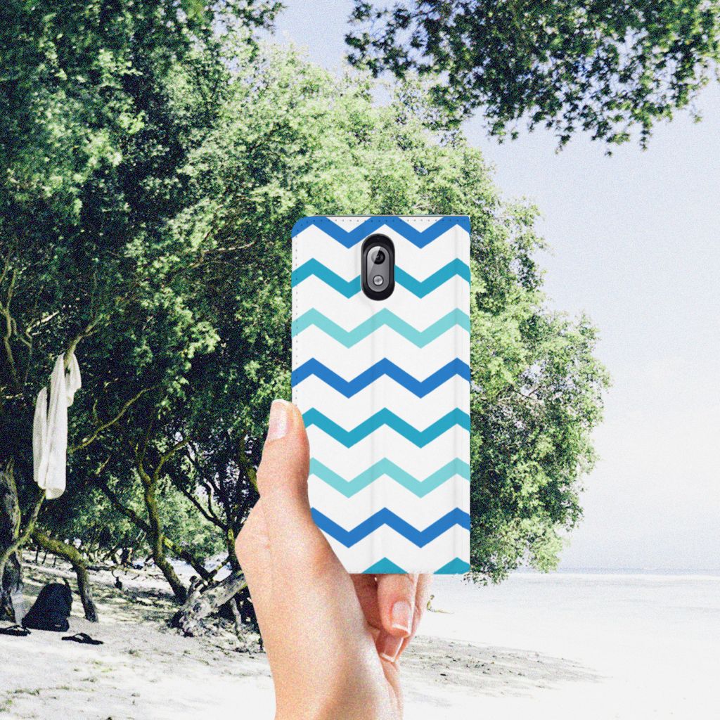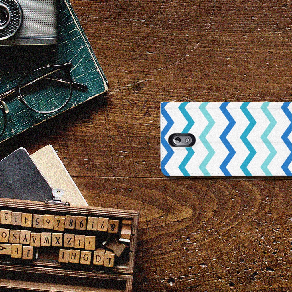 Nokia 3.1 (2018) Hoesje met Magneet Zigzag Blauw