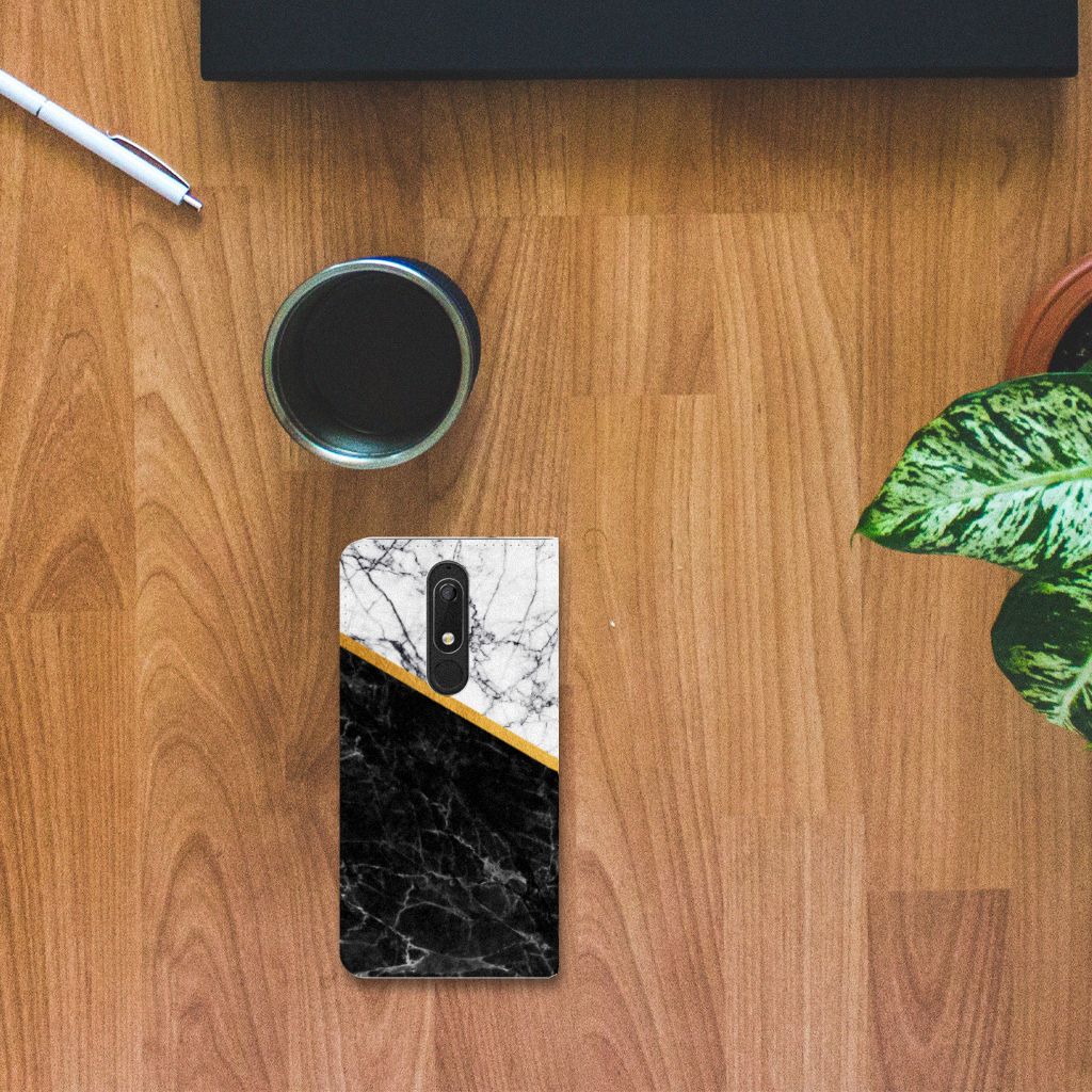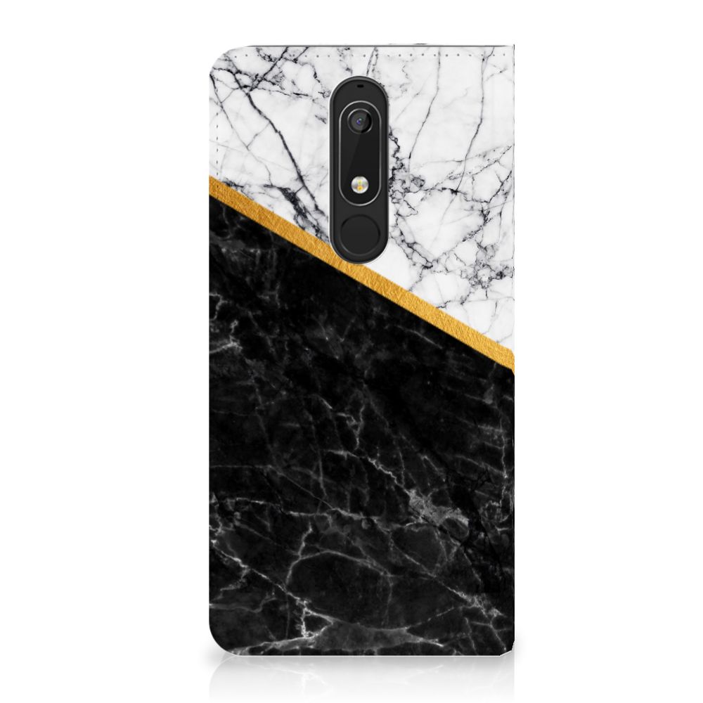 Nokia 5.1 (2018) Standcase Marmer Wit Zwart - Origineel Cadeau Man