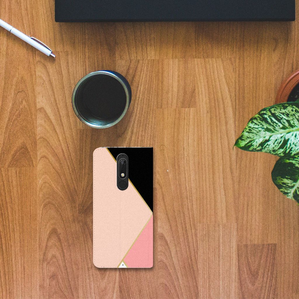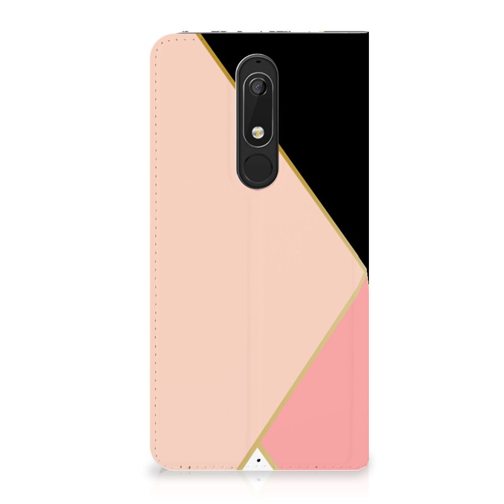 Nokia 5.1 (2018) Stand Case Zwart Roze Vormen