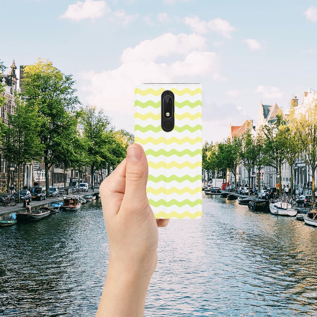 Nokia 5.1 (2018) Hoesje met Magneet Waves Yellow