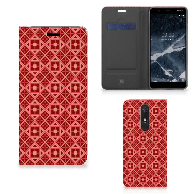 Nokia 5.1 (2018) Hoesje met Magneet Batik Rood