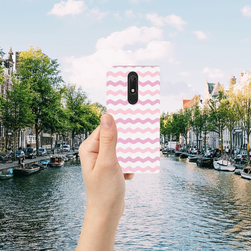 Nokia 5.1 (2018) Hoesje met Magneet Waves Roze