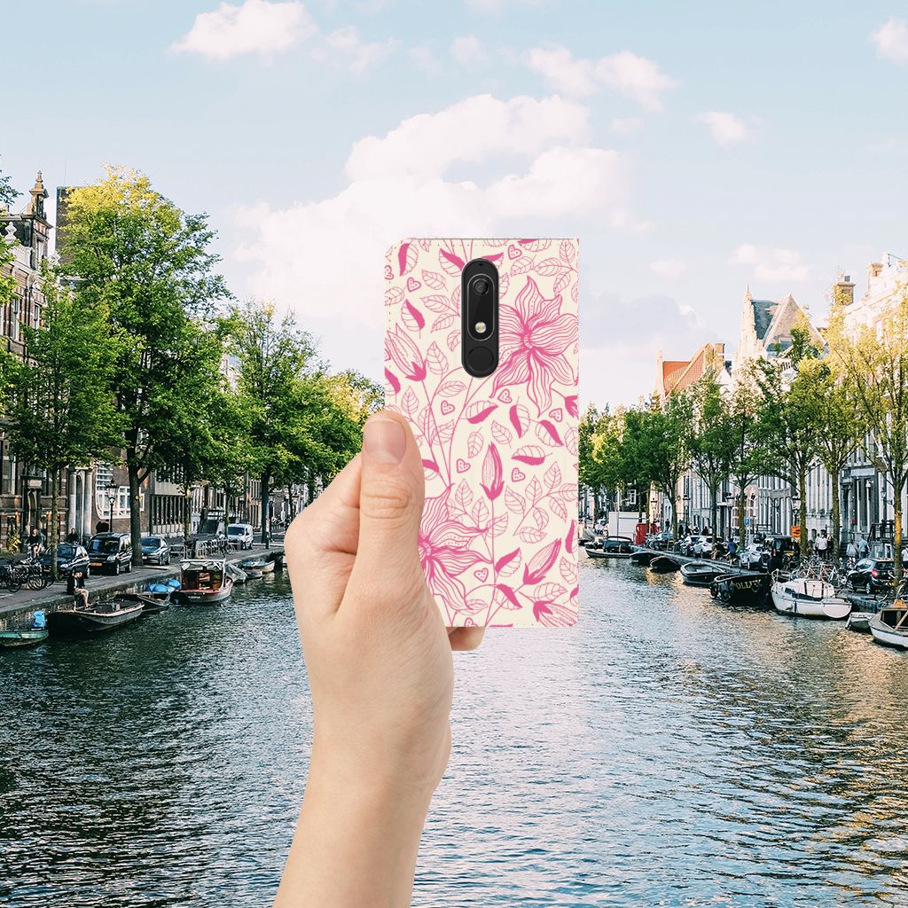 Nokia 5.1 (2018) Smart Cover Pink Flowers