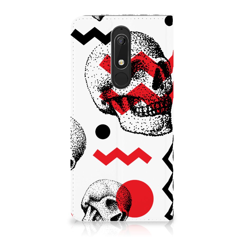 Mobiel BookCase Nokia 5.1 (2018) Skull Red