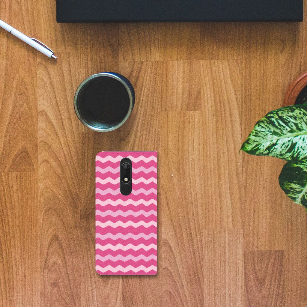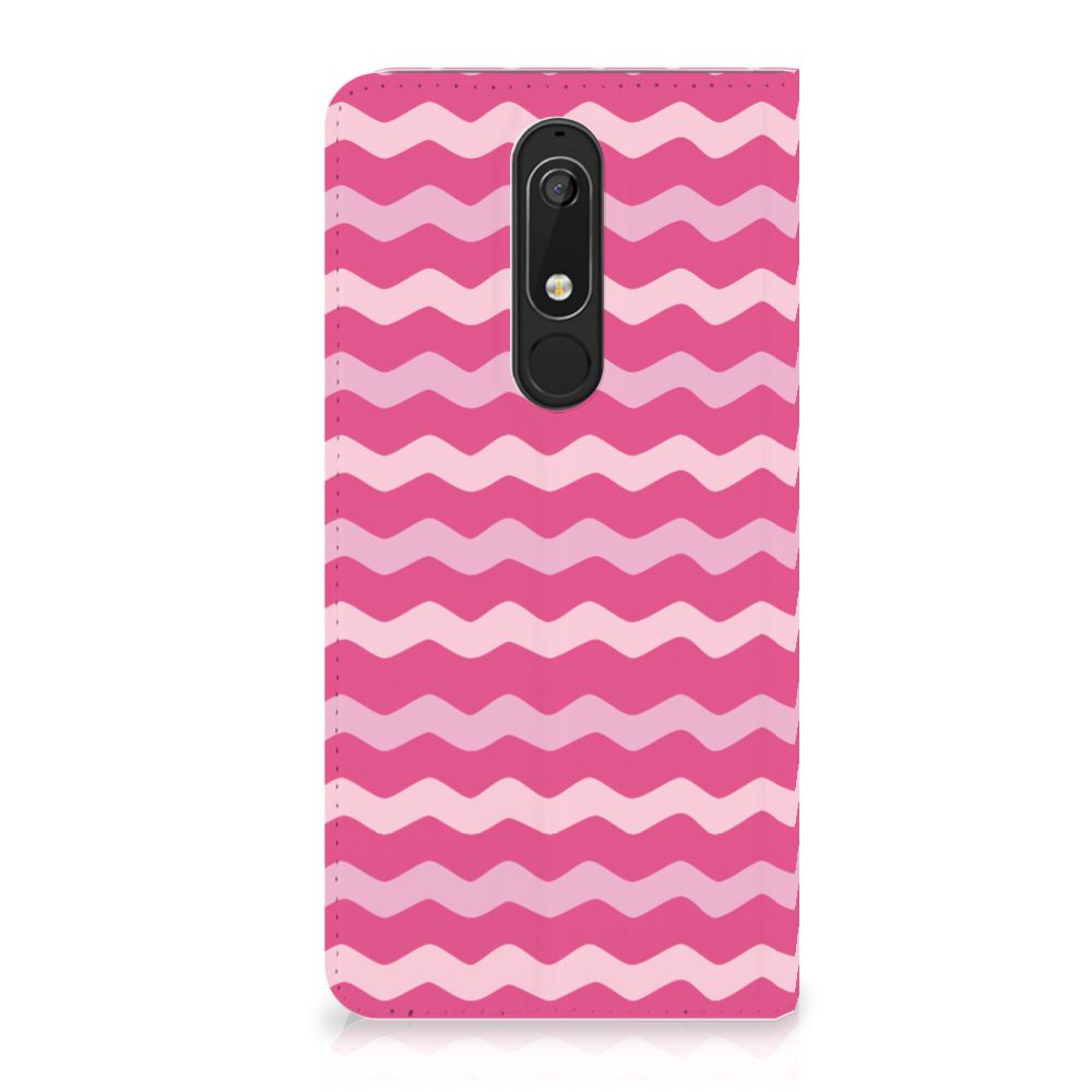 Nokia 5.1 (2018) Hoesje met Magneet Waves Pink