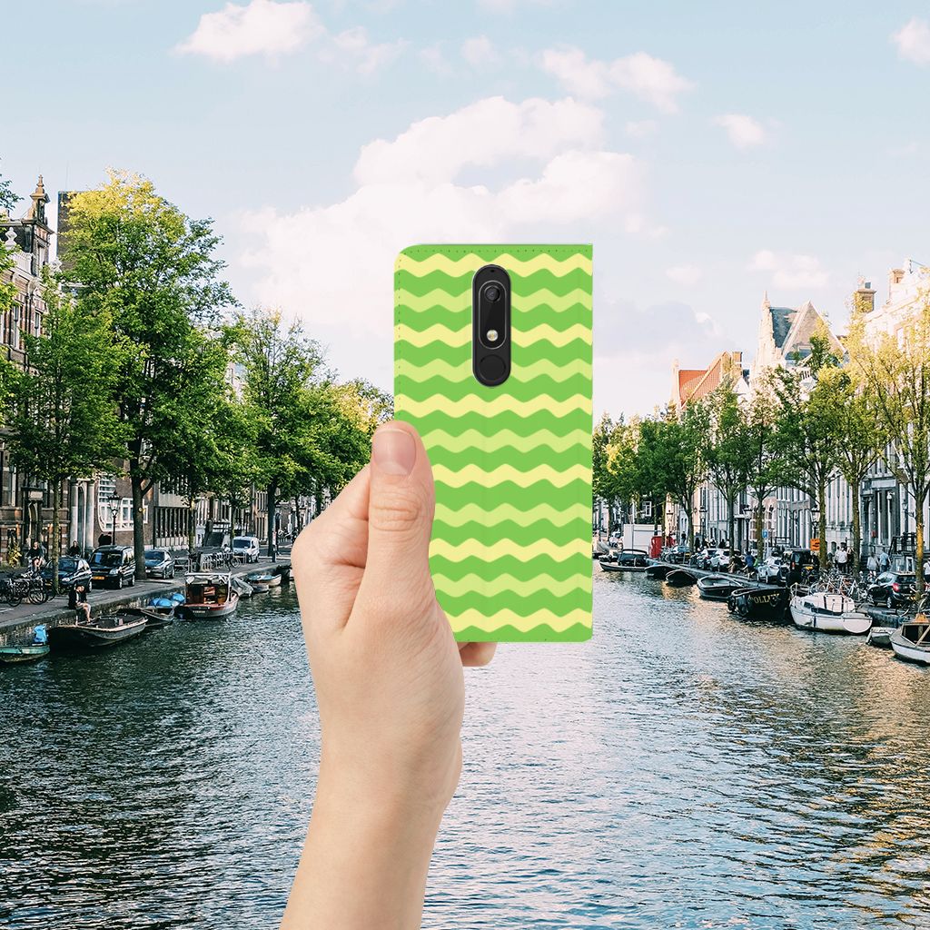 Nokia 5.1 (2018) Hoesje met Magneet Waves Green