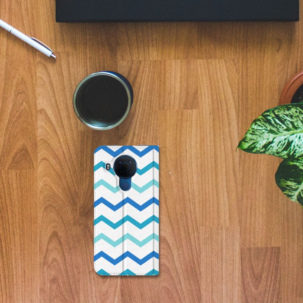 Nokia 5.4 Hoesje met Magneet Zigzag Blauw