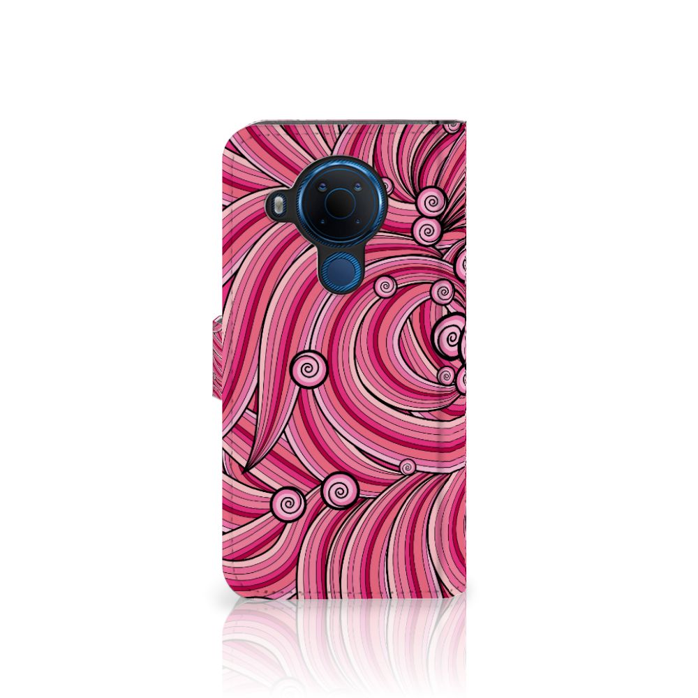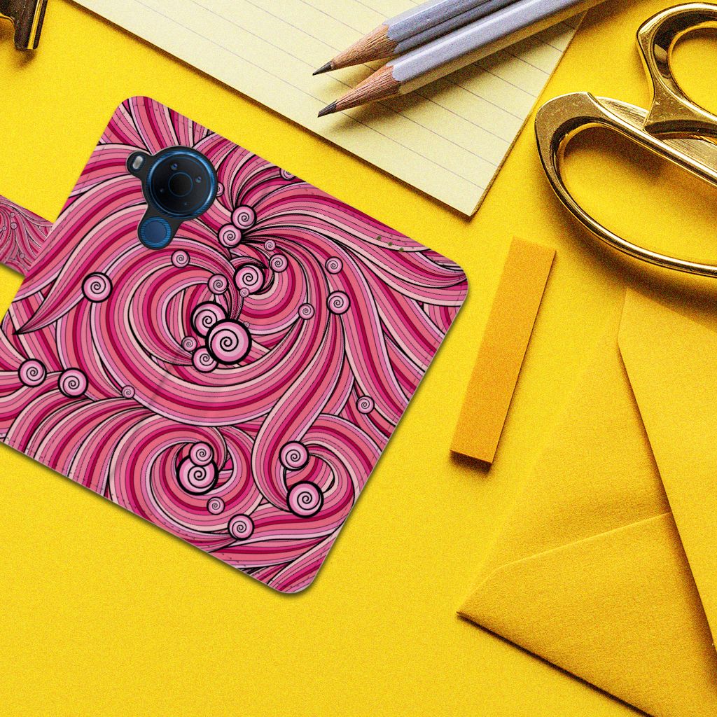 Nokia 5.4 Book Case Zwart Roze Vormen