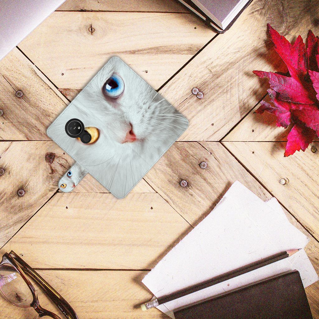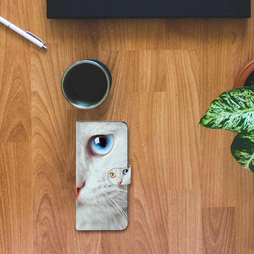 Nokia 7.2 | Nokia 6.2 Telefoonhoesje met Pasjes Witte Kat