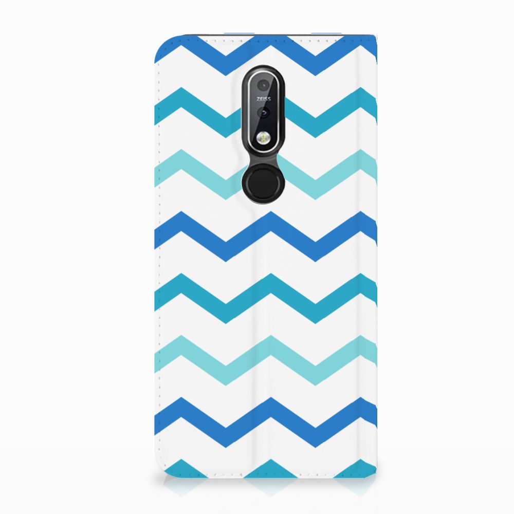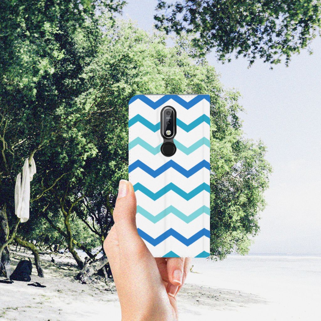 Nokia 7.1 (2018) Hoesje met Magneet Zigzag Blauw
