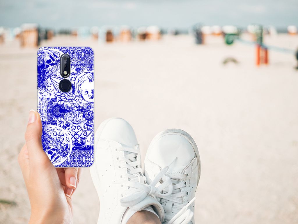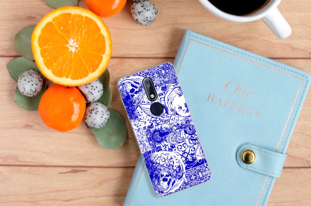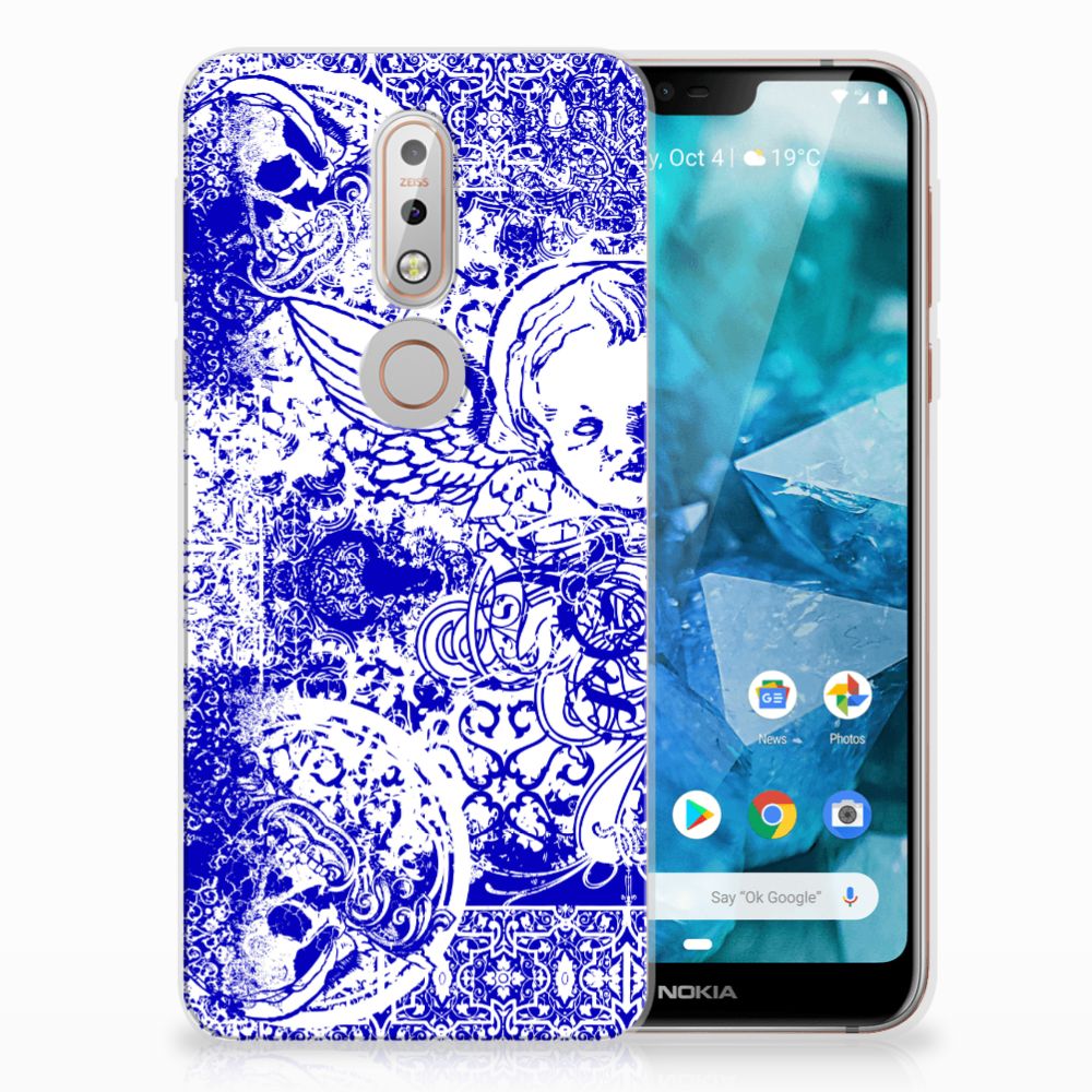 Silicone Back Case Nokia 7.1 Angel Skull Blauw