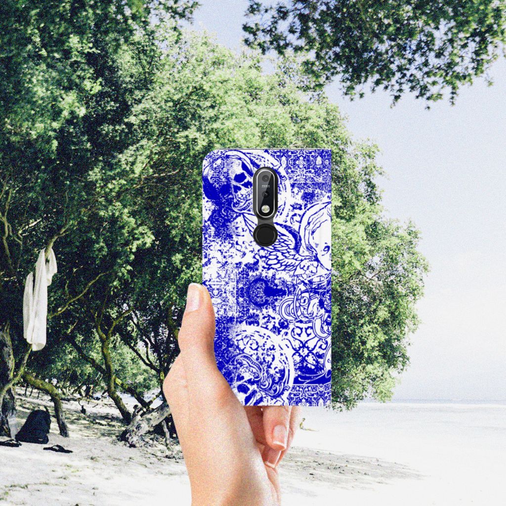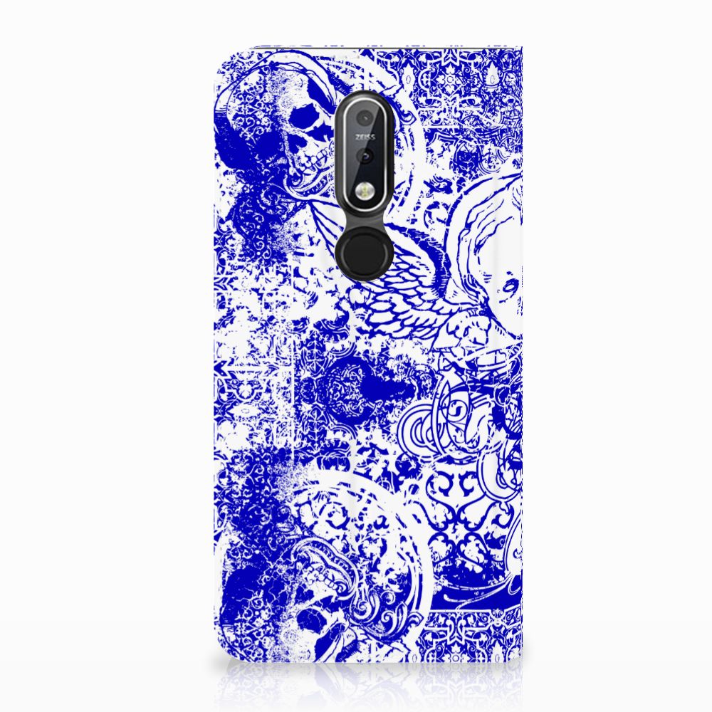Mobiel BookCase Nokia 7.1 (2018) Angel Skull Blauw