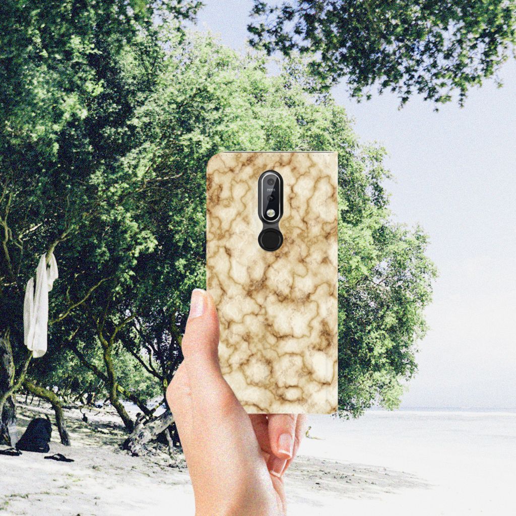 Nokia 7.1 TPU Siliconen Hoesje Marmer Goud