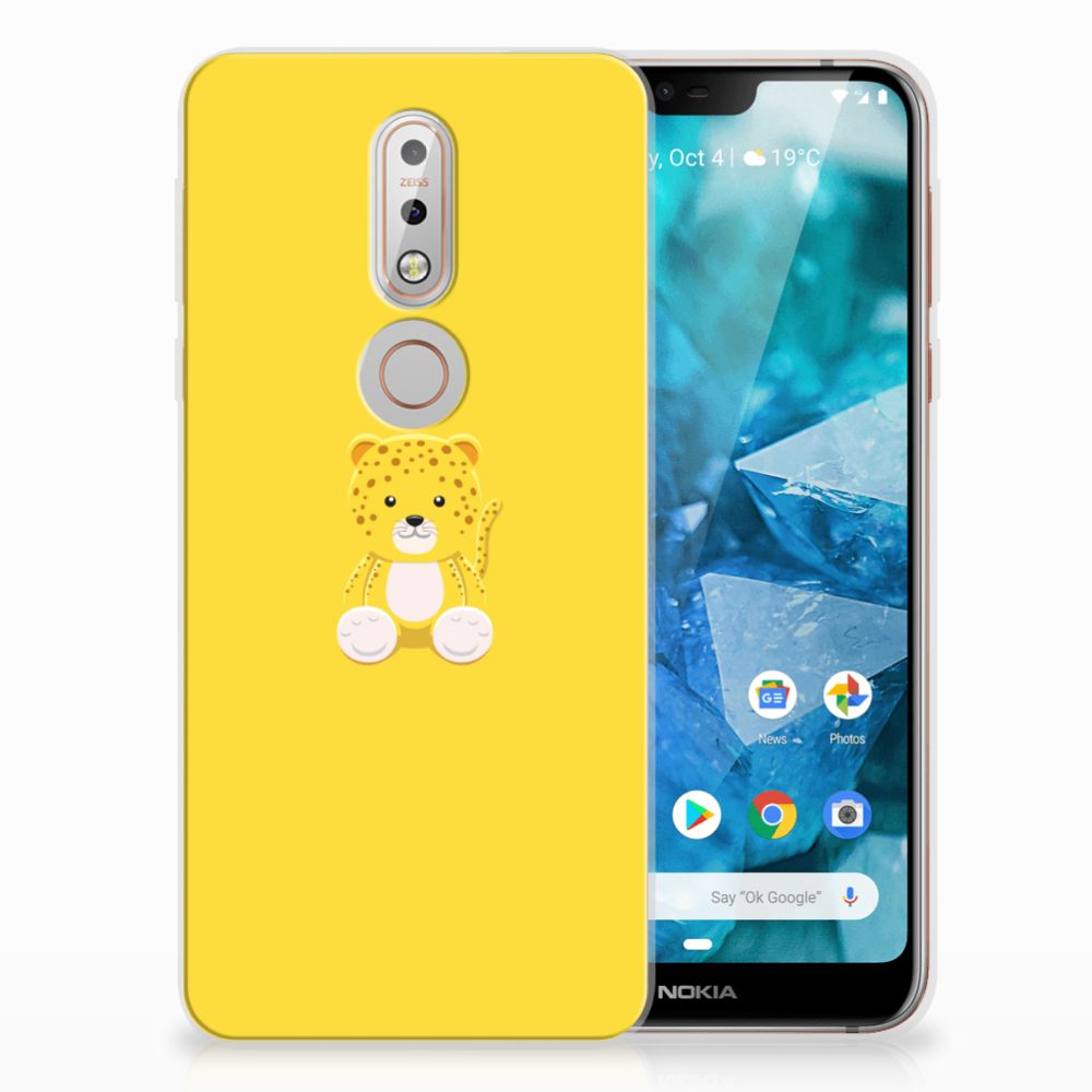 Nokia 7.1 Telefoonhoesje met Naam Baby Leopard