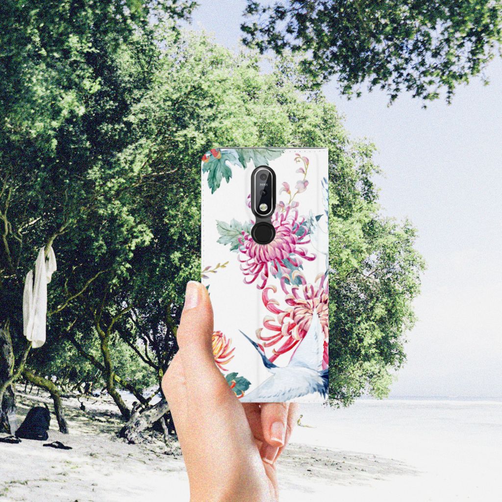 Nokia 7.1 (2018) Hoesje maken Bird Flowers