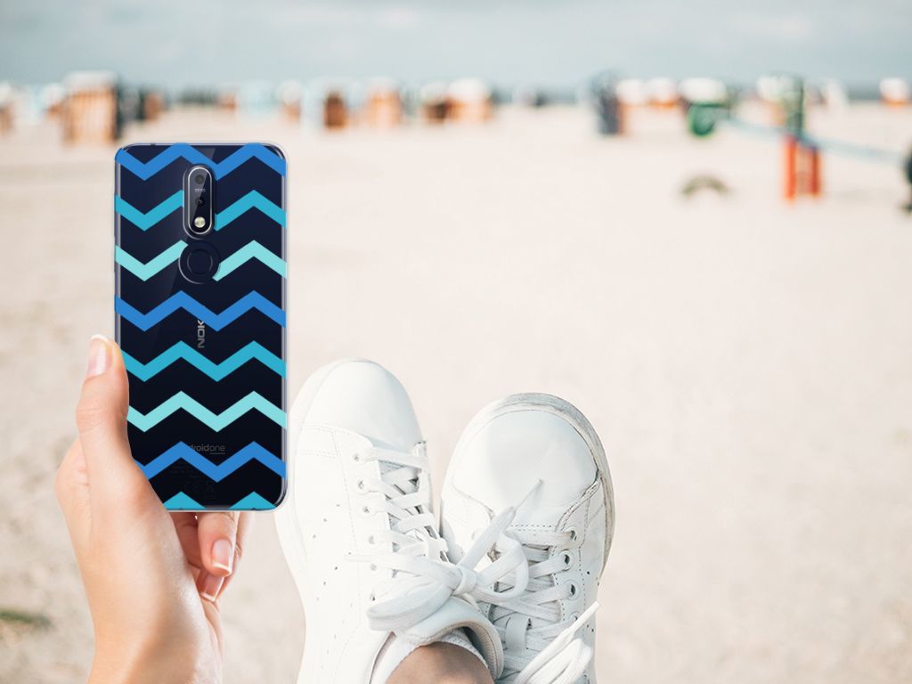 Nokia 7.1 TPU bumper Zigzag Blauw