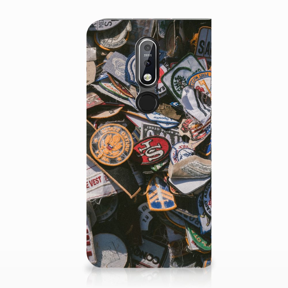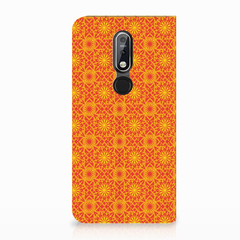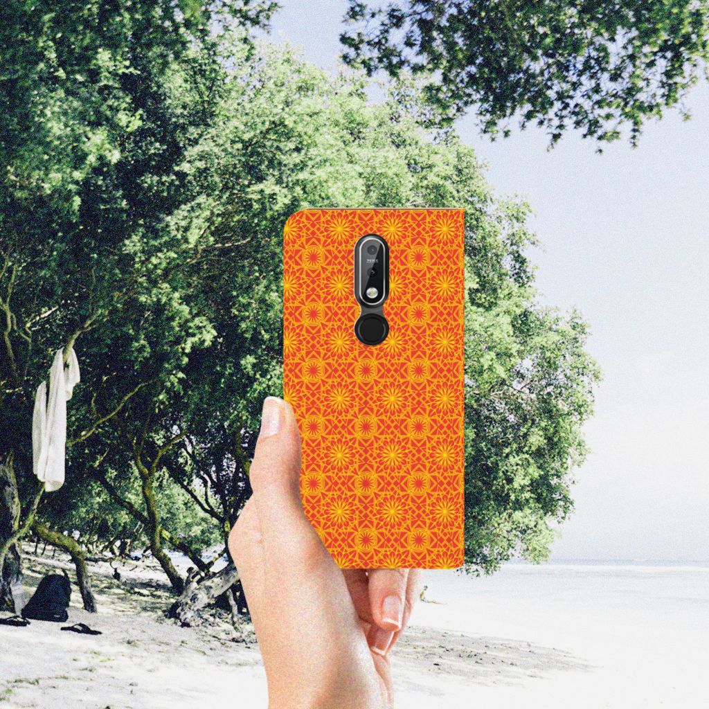 Nokia 7.1 (2018) Hoesje met Magneet Batik Oranje