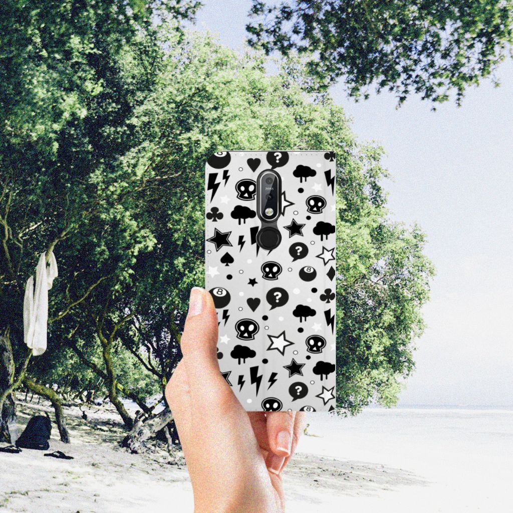 Mobiel BookCase Nokia 7.1 (2018) Silver Punk