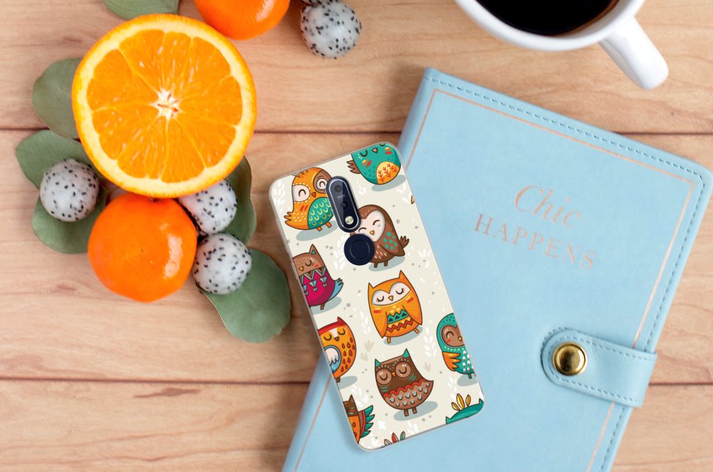 Nokia 7.1 TPU Hoesje Vrolijke Uilen