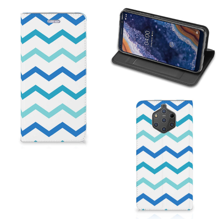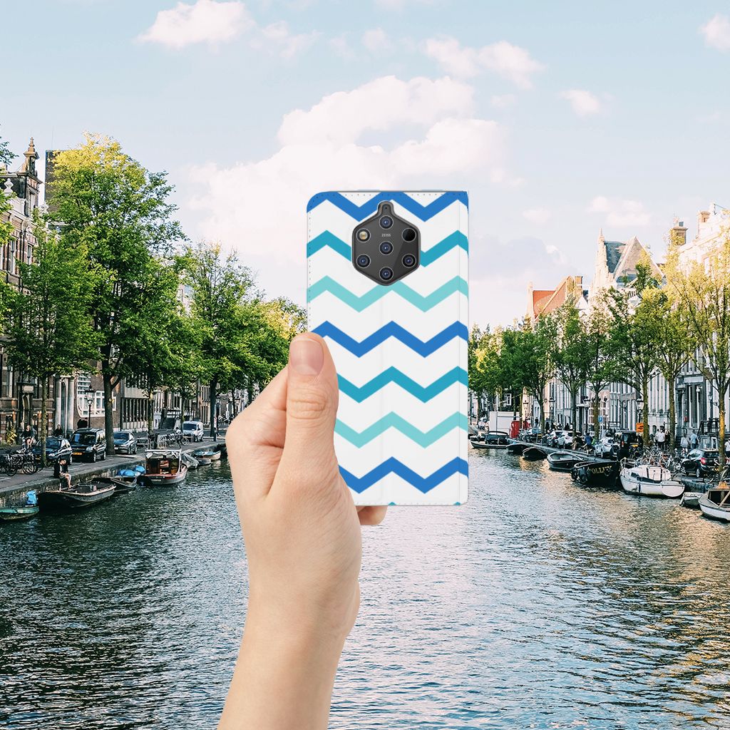 Nokia 9 PureView Hoesje met Magneet Zigzag Blauw