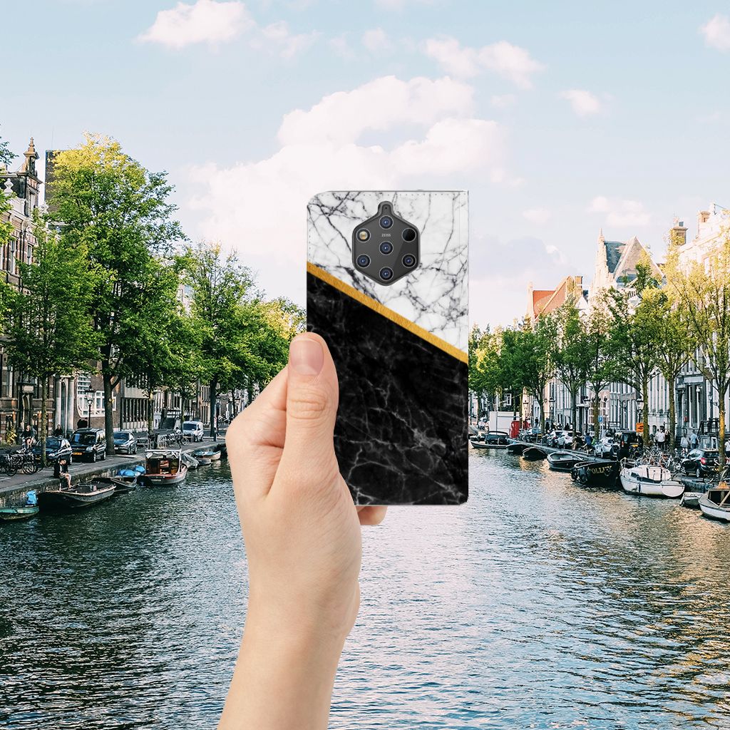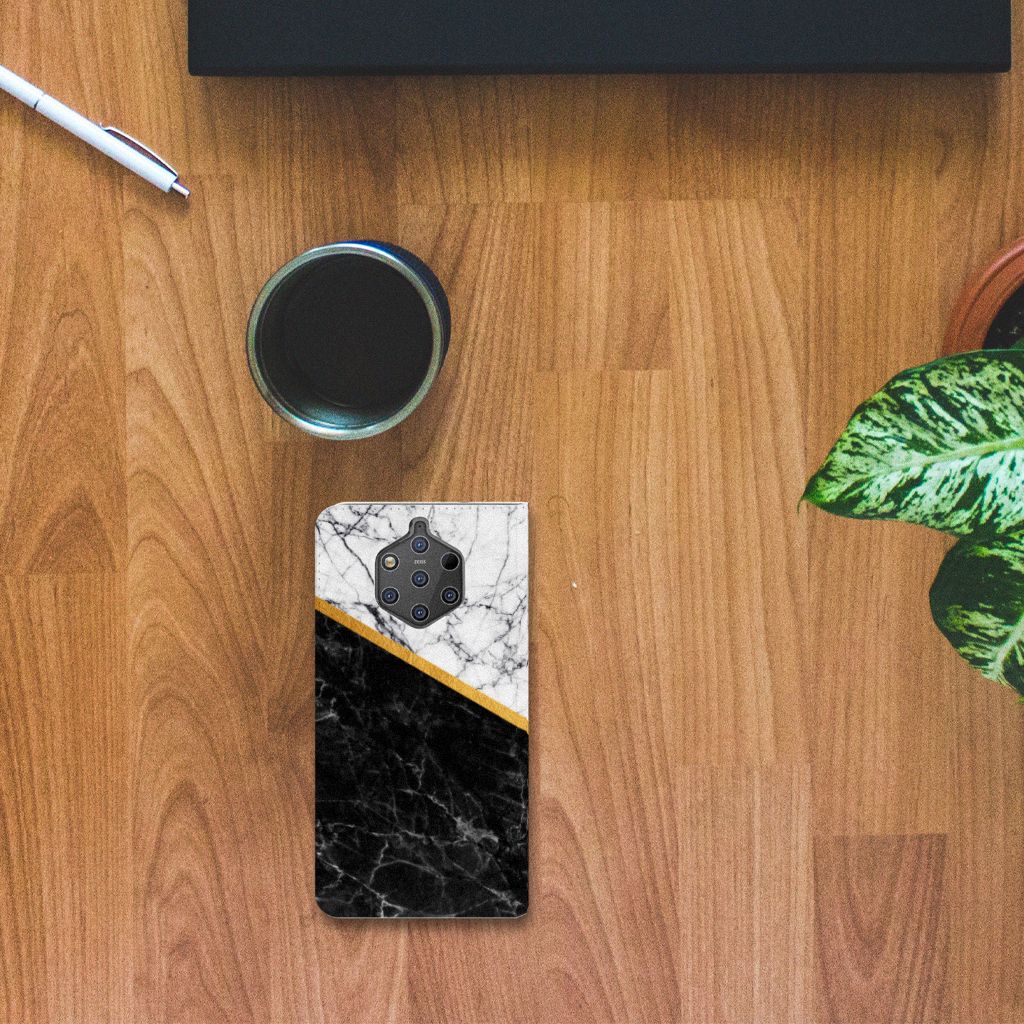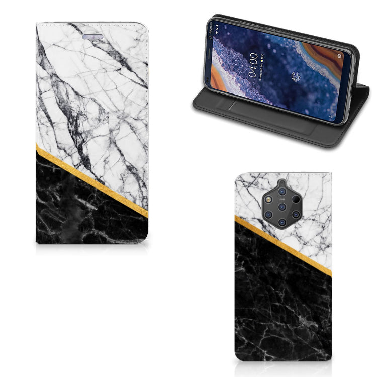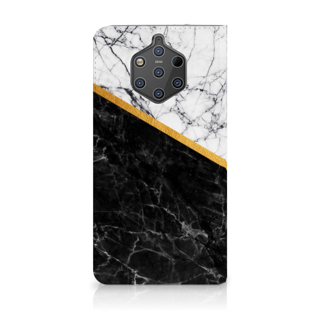 Nokia 9 PureView Standcase Marmer Wit Zwart - Origineel Cadeau Man