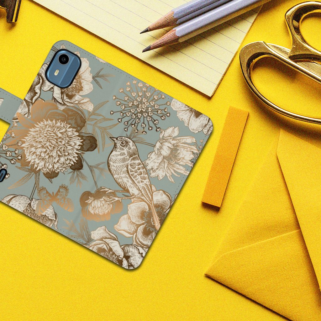 Hoesje voor Nokia C12 Vintage Bird Flowers