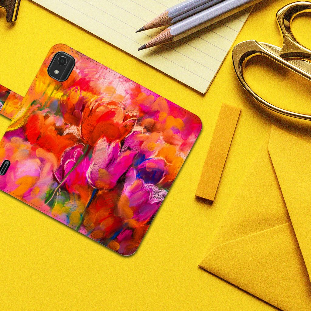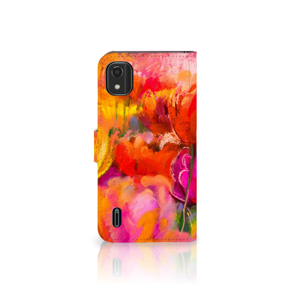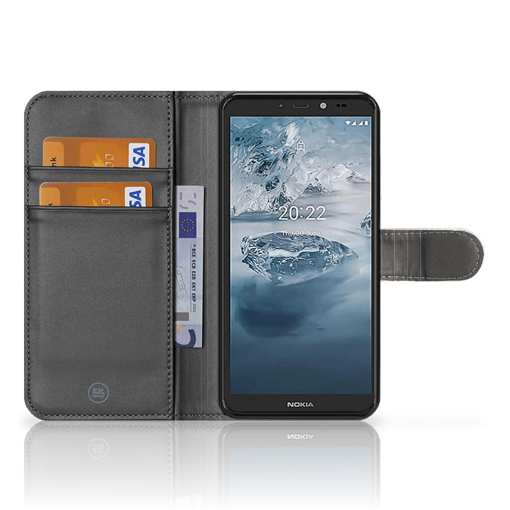 Nokia C2 2nd Edition Portemonnee Hoesje Flowers Blue DTMP
