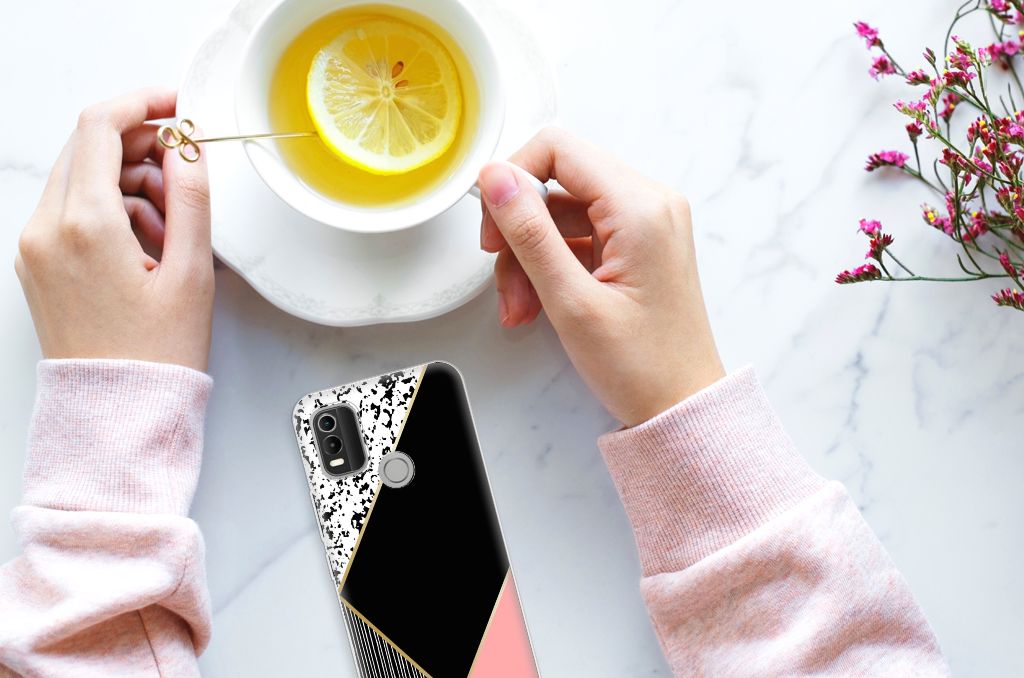 Nokia C21 Plus TPU Hoesje Zwart Roze Vormen